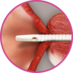 • Pull gently on the suture to feel the resistance of the wings of the upper tube deployed above the sphincter.