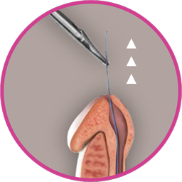 • Cut the retrieval suture: leave 3 mm protruding outside the meatus.